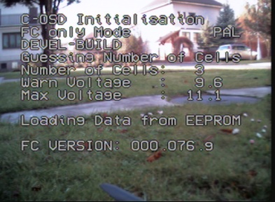 The weight is 944g without video transmitter and it’s antenna (as at the photos). I have chosen Ca$cAdE C-OSD project software for OSD. Thank you, Claas ! You can find the source code on mikrokopter’s SVN. But many functions in the FC mode weren’t available, although it can be. The art horizon is also simple, so I decided to slightly rebuilt the code. Of course, the characters’ set has to be changed to show this feature. I have to thank NuClear for tight colaboration on this issue. Here you can download the hex files for ATmega162: OSD hex files Fuses (ATmega 162): EXTENDED: 0xFB, HIGH: 0xD7, LOW: 0xEF And the result is here. Kindly see the video: Mikrokopter OSD test