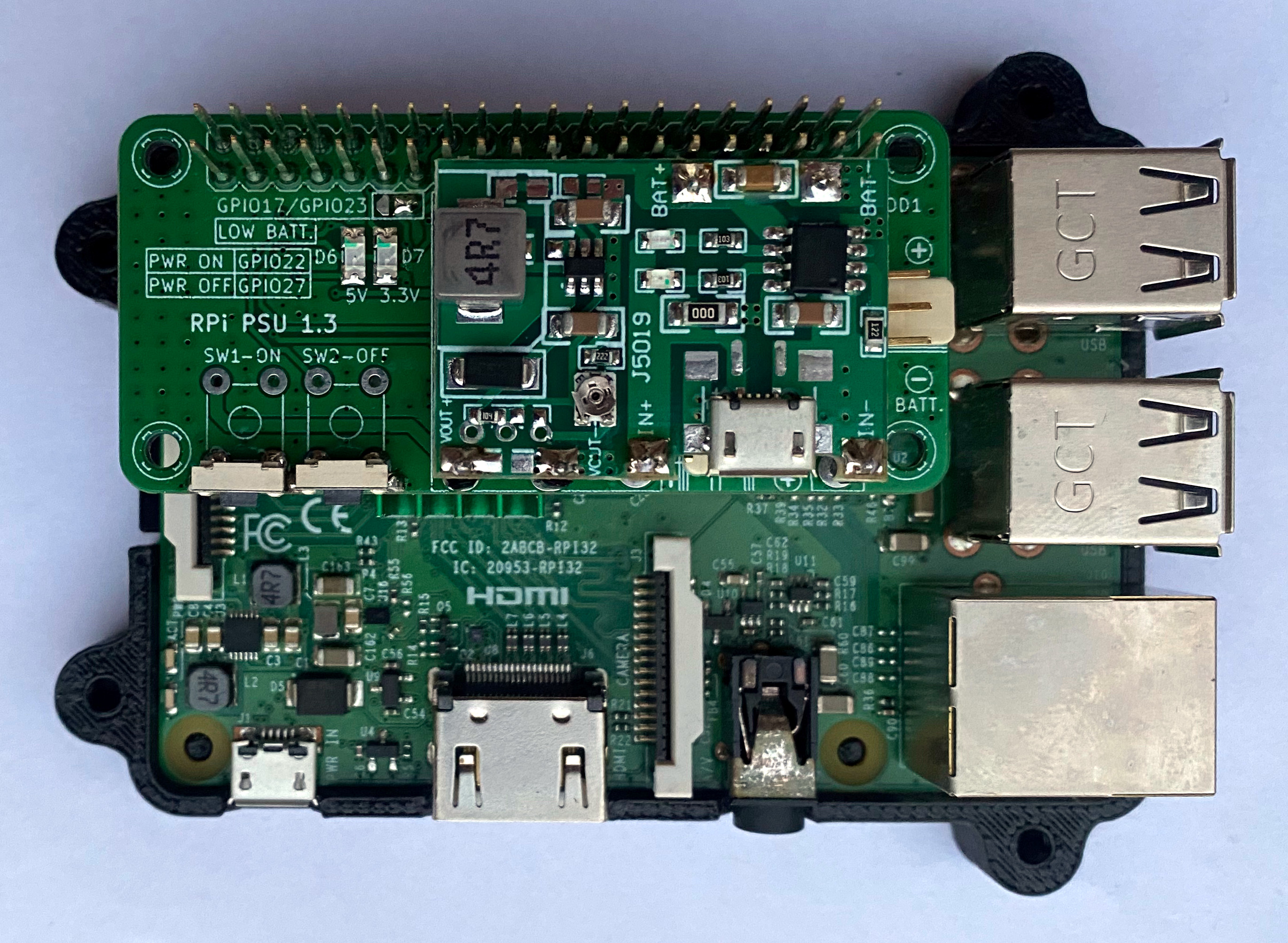 You can see the PSU board above Raspberry Pi 3B+ in the following picture: