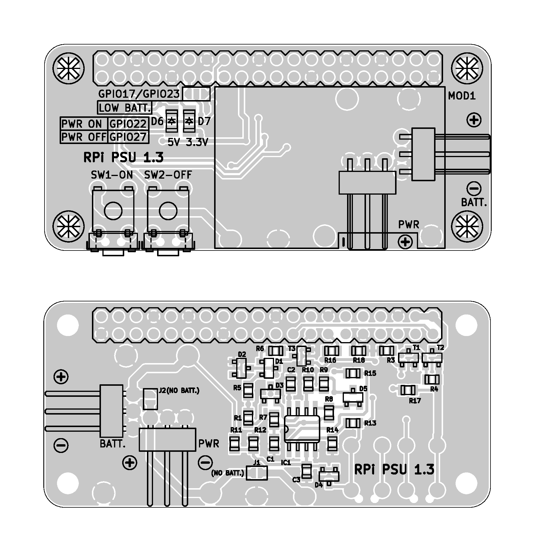 The target of this design is to provide power supply and backup energy for Raspberry Pi. It was designed in the format of Raspberry Pi Zero to build a stackable complex in the end.